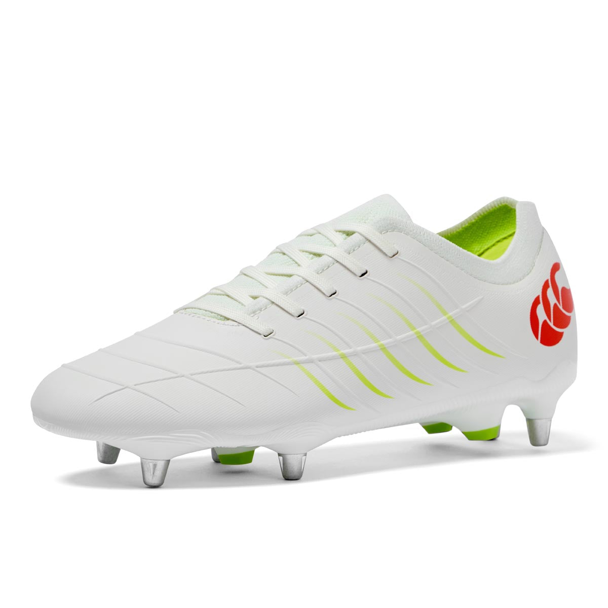 - Rugby approved six metal studs combine with rhombus shaped moulded studs, for unrivalled traction on soft-ground.