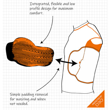 - The compression tops feature a pocket to house the D3O panel within them to offer chest protection.