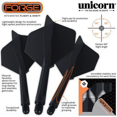 Unicorn’s Forge Integrated Flight and Shaft system puts a modernised twist on the classic dart set-up by fusing the flight and shaft for enhanced flight speed, durability and exceptional force absorption. Easy to install with an extensive range of barrels, the Forge is perfect for beginners and experienced players pursuing greater consistency and accuracy in their throws, with the precision-engineered 90° flight angle providing excellent stability. Its advanced polymer construction ensures long-lasting gameplay for players ready to take their game to the next level.