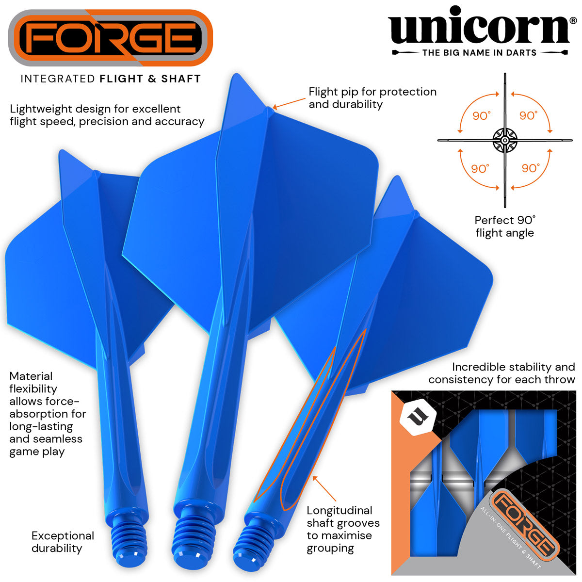 Stable and Consistent Flight Path - In addition to the precision-engineered 90° flight angle, the rigidity of the Forge system guarantees a highly consistent flight path, providing superb stability for enhanced throwing precision and tighter groupings, leading to higher scoring.